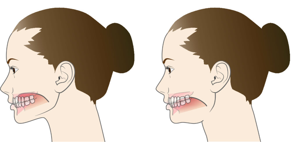 一方で、舌が下に落ちていたり、歯を押していたりする状態はあまり良い舌の位置とはいえません。例えば、口呼吸の習慣がある方や、無意識のうちに口が開いている方は、舌が下がっていることが多いとされています。このような状態が続くと、口周りの筋肉のバランスが崩れ、歯並びや噛み合わせに影響する可能性があります。